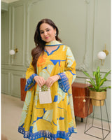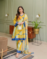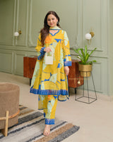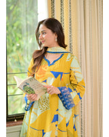 Yellow Abstract Aline Premium Cotton Suit