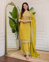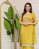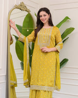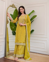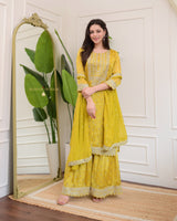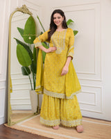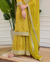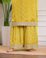 Yellow Handwork Premium Chinnon Sharara Set