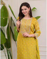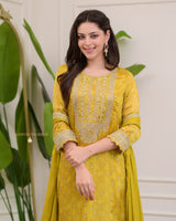 It is paired with matching Sharara Pants and Dupatta, which is highlighted with Premium Hand Embroidery and Prints!