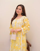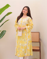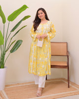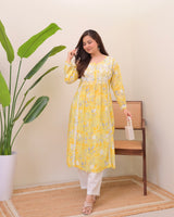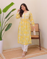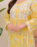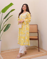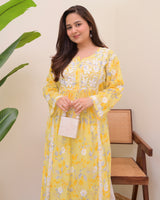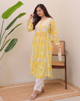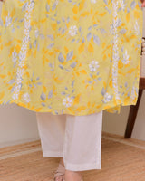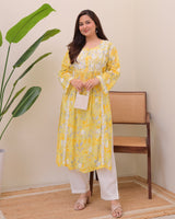 Yellow Pastel Flora Mul Cotton Chikankari Kurta
