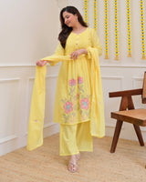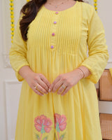 Step into effortless elegance with our Mul Cotton A-line Suits, crafted for comfort and grace. Made from soft, breathable mul cotton, these suits keep you cool while the intricate thread embroidery adds a touch of timeless charm.
