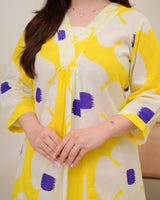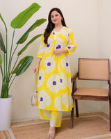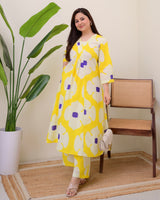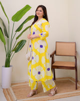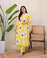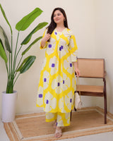 Yellow Purple Cotton A Line Kurta Palazzo Set