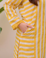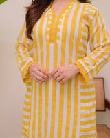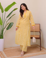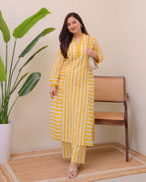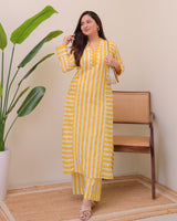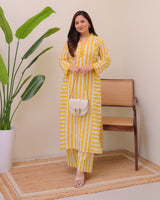 Yellow Sunlit Striped Luxe Cotton Kurta Set