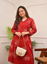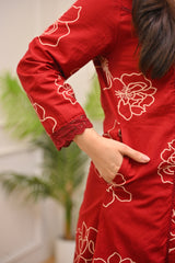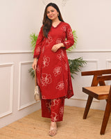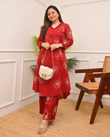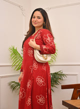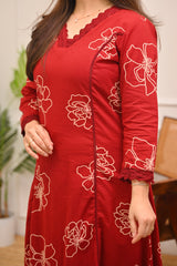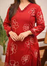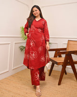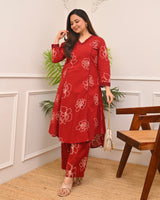 Crimson Floral A Line Cotton Kurta Set