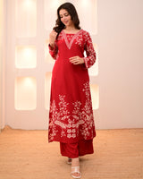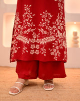 Scarlet Petals Cotton A Line Kurta Palazzo Set