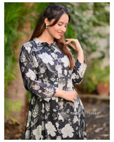 Make your work-day seem absolutely amazing, whenever you deck yourself up in this A Line Muslin Co-ord Set which is so easy breezy and comfortable. It is decorated with princess cut high-low pattern, collar and buttons.