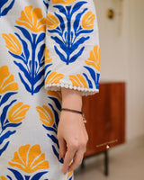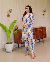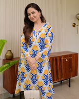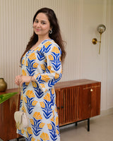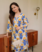 Blue Yellow Floral Bouquet A Line Premium Cotton Co-ord Set