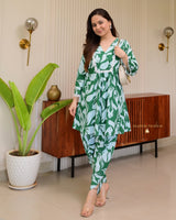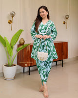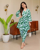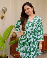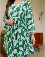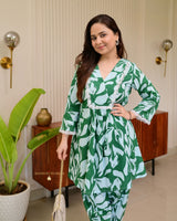 Bottle Green Floral Tulip Premium Cotton Co-ord