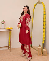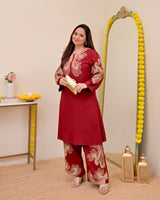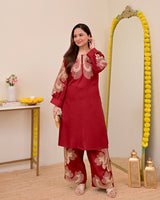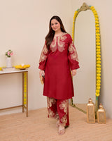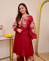 Crimson Charm Classic Threadwork Cotton Co-ord