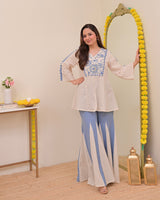 Ivory Blue Mirror Resham Work Cotton Co-ord