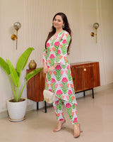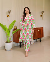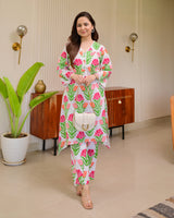 Embrace elegance with our Floral Premium Cotton Co-ords featuring a gracefully printed A-line kurta and straight pants. It has very beautiful neckline which adds a touch of sophistication.