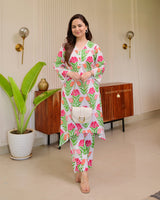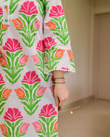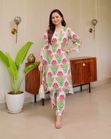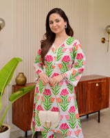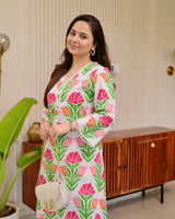 Ivory Pink Floral Bouquet A Line Premium Cotton Co-ord Set