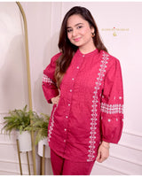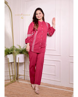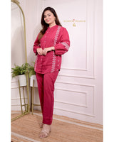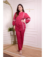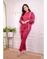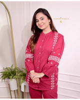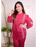 Prepare to get overwhelmed with a swirl of compliments by dressing yourself in these coordinate sets. It is crafted with finest thread embroidery.
