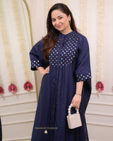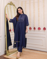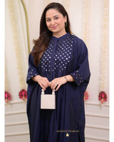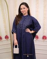 Embrace the festive spirit with our effortlessly chic Cotton Silk Navy Blue Kaftan set!