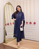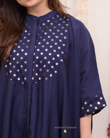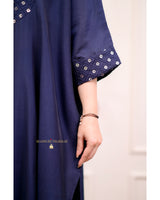 Navy Blue Cotton Silk Embroidered Kaftan Set