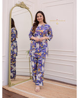 Royal Blue Jungle Cotton Loungewear Set