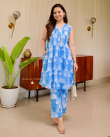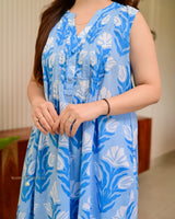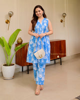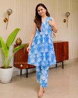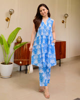 Shades of Blue Floral Pintex Premium Cotton Co-ord