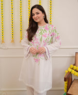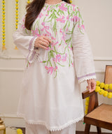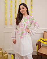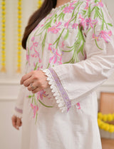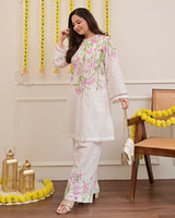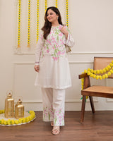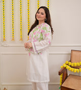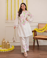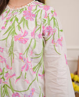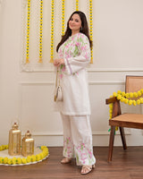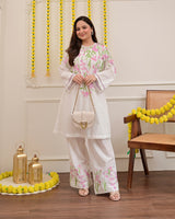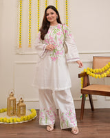Vanilla Rose Floral Threadwork Mul Cotton Co-ord