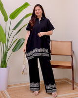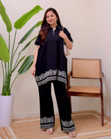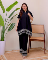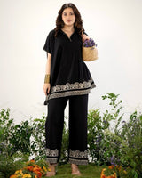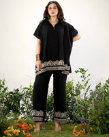 Zen Black Threadwork Kaftan Style Cotton Co-ord