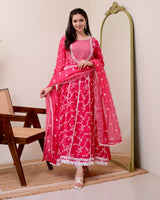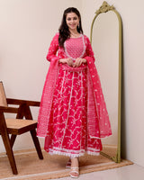 Step into the world of subtle glamour with our new Organza Anarkali Suit Set. Crafted with delicacy, the kurta has beautiful embroidery all-over.