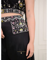 Paired with matching flared palazzo pants which has hand embroidered belt and mini pouch to keep your go-to essentials.