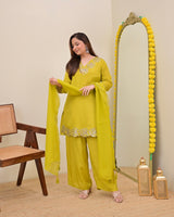Liril Yellow Rose Handwork Crepe Festive Sharara Set