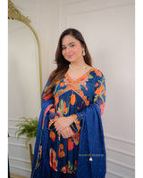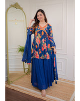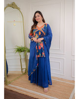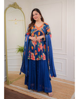 Navy Blue Handwork Chinnon Sharara Set