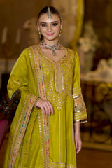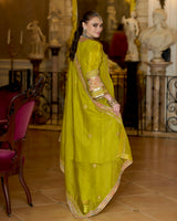 Color: Emerald Yellow, Gotapatti Hand Embroidery
