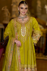 Where elegance meets legacy. Featuring this beautiful Pure Shimmer Tissue A-line Suit which is elevated with fine Gotta-patti hand embroidery & paired matching palazzo pants and a dupatta.