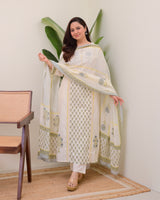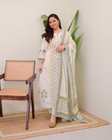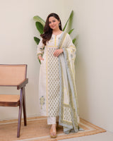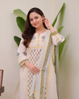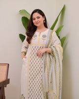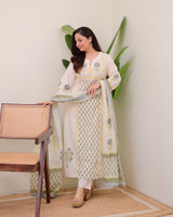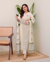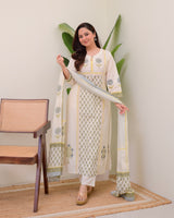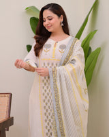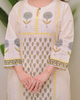 Ivory Yellow Floral Printed Premium Cotton Suit
