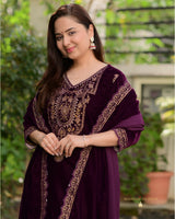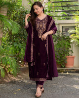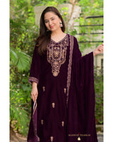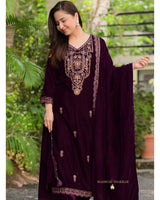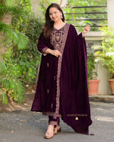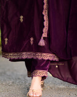 Magenta Handwork Premium Velvet Suit