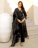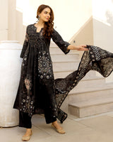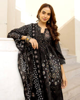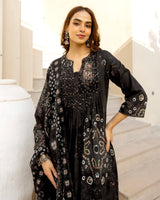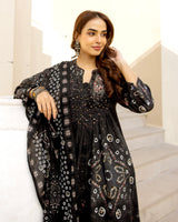Moonlit Black Bandhani Cotton A Line Suit