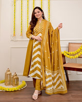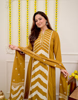 This season, let your wardrobe bloom with sophistication. Our finely tailored cotton suits features an artistically crafted A Line kurta with intricate embroidery, laces and prints, complemented by the elegance of a comfort fit salwar and coordinating dupatta.Β