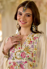 Where elegance meets legacy. Featuring this beautiful Pure Mul Chanderi Aline Suits which are elevated with fine kashmiri thread embroidery, paired matching pant and an intricately embroidered dupatta.