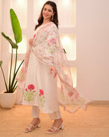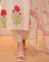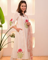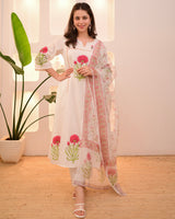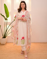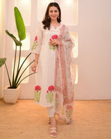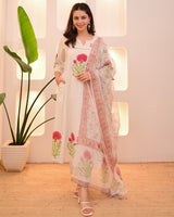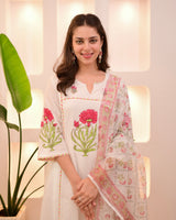 Where elegance meets legacy. Featuring this beautiful Pista Green and Ivory shades Cotton Suits which are elevated with finest floral prints, paired matching pants and dupatta.