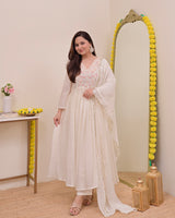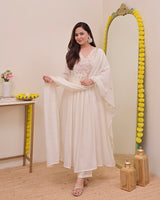 Featuring Beautiful Premium Mul Chanderi A-line Suits which are crafted with finest hand embroidery. It is so light weighted and comfortable for your upcoming gatherings.
