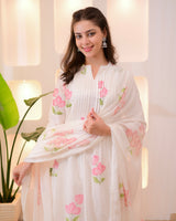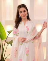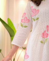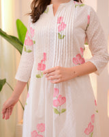 Pink Tulip Garden Mul Cotton A Line Suit