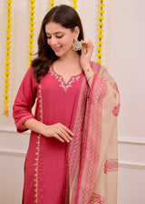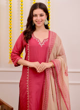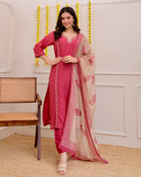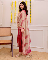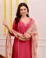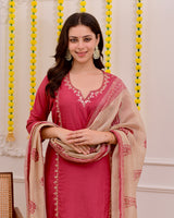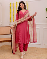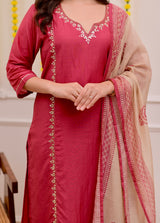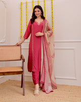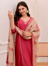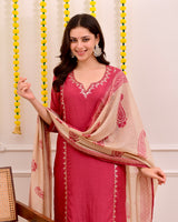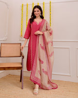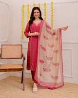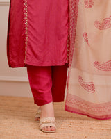 Raspberry Red Gota Patti Handwork Mul Chanderi Suit