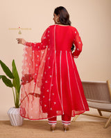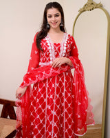 Step into the world of subtle glamour with our new Organza Anarkali Suit Set. Crafted with delicacy, the kurta has beautiful embroidery all-over.