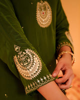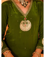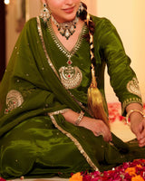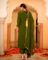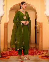 It is paired with matching comfort fit Pants and pure Organza Dupatta adorned with embroidery.