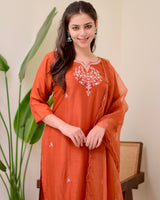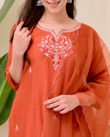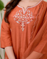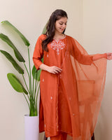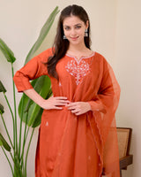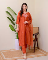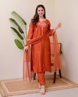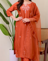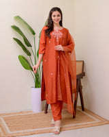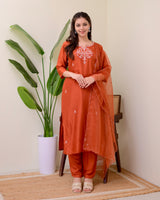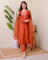 Featuring Raw Silk Festive Suits in Beautiful 2 shades, it is crafted with finest hand embroidery on yoke and buttas on top.
