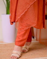 It is paired with matching pants and scalloped handwork organza dupatta. A must have for this festive season.Â