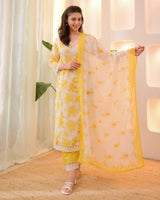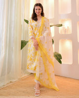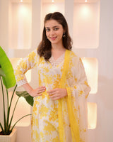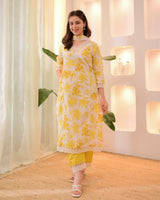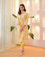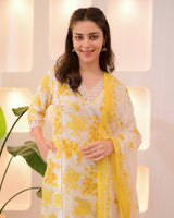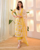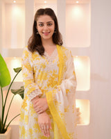 Sunlit Petals Pakistani Lace Cotton Suit