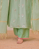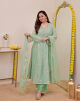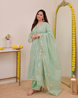 Turquoise Gotapatti Handwork Mul Chanderi A Line Suit