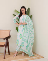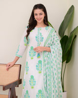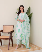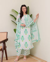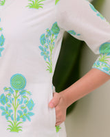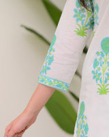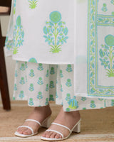 Turquoise White Floral Cotton Kurta Palazzo Suit