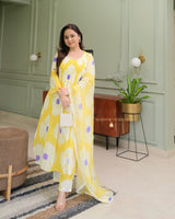 Wrap yourself in the artful charm of our Black and Yellow suit sets, a celebration of Central Asian Ikat influence.