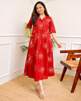 Crafted in pure, lightweight cotton, these dresses are designed to keep you cool and comfortable all day long. The flattering A-line cut gives you that beautiful flare and movement, while the vibrant floral prints add freshness and charm to your everyday wardrobe.
