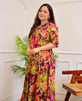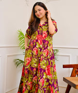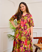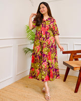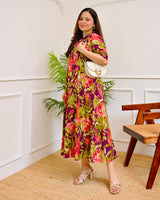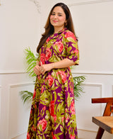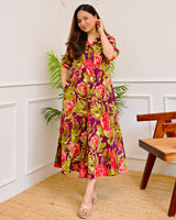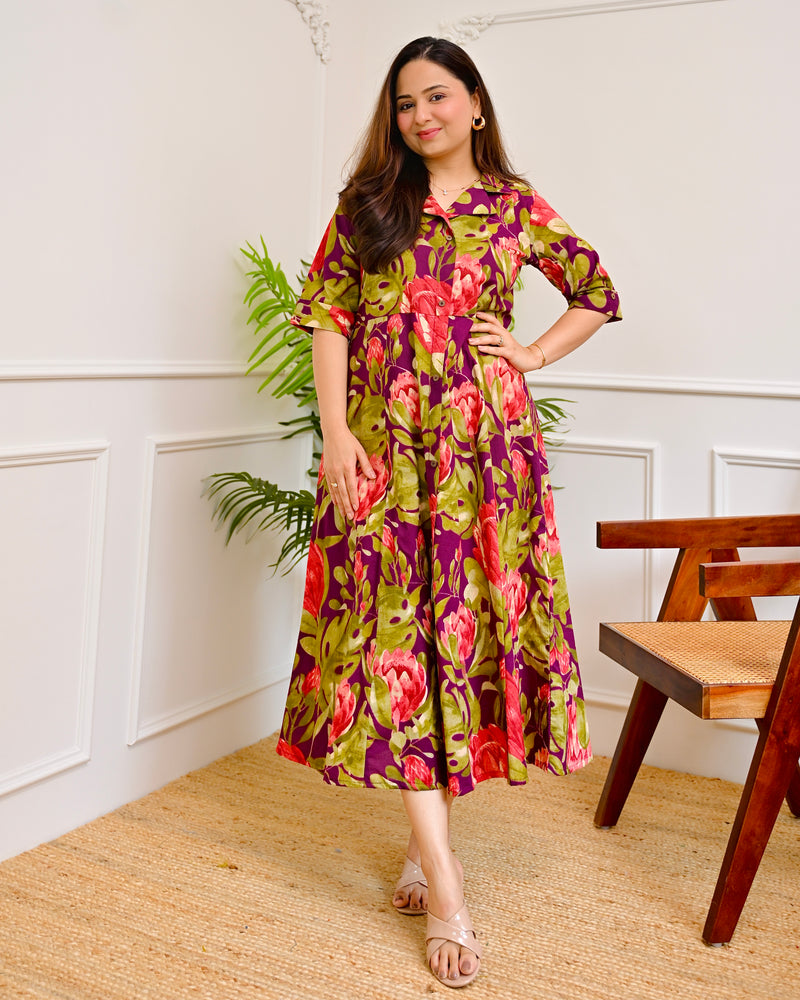 Magenta Garden Floral Cotton A Line Dress