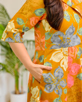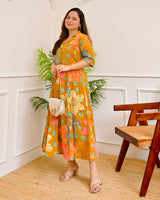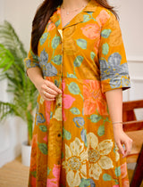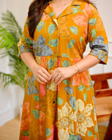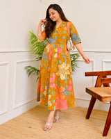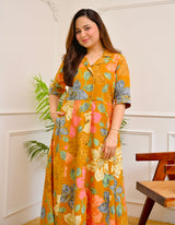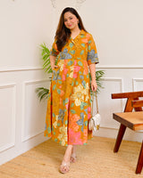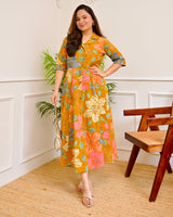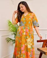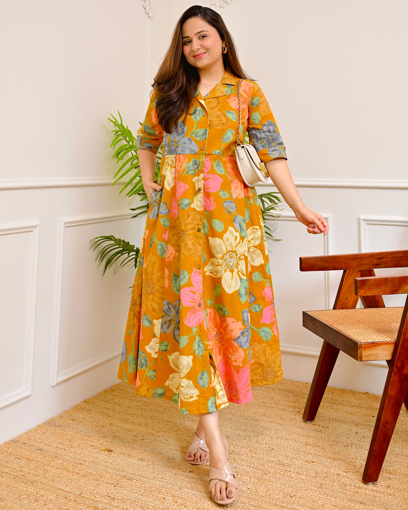 Mustard Multi Floral Cotton A Line Dress