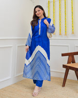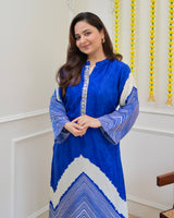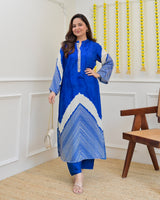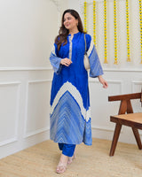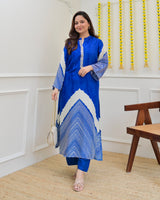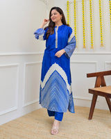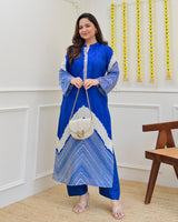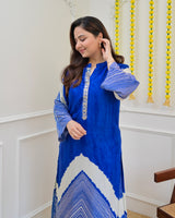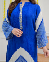 A perfect outfit for your upcoming functions. It is made in premium pure Muslin Silk fabric highlighted with intricate hand embroidery & prints.